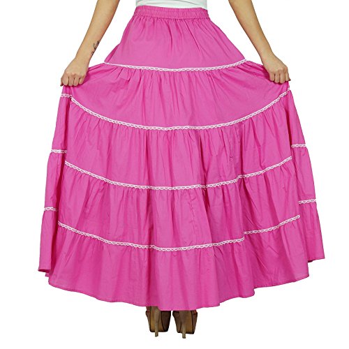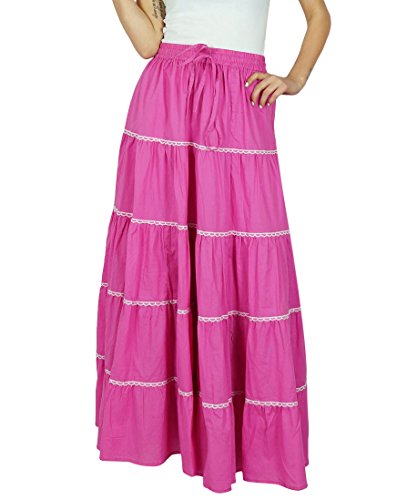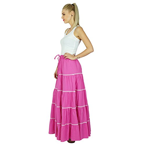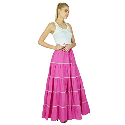 Bimba Gonna lunga da donna in cotone svasato Boho Maxi Bottoms elastico in vita abbigliamento indiano rosa, rosa, 46
