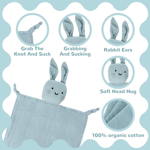 ◊【La confezione regalo contiene 6 articoli】:Coperta in mussola con orecchie fantasia e dettaglio naso cucito a mano, sciarpa di misura regolabile, anello da dentizione in legno reversibile e biglietto di benvenuto in legno, anello da dentizione con catena anti-smarrimento, fascia per capelli con fiocco.