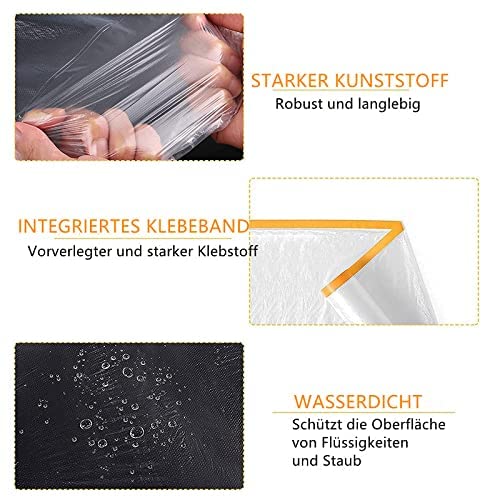 Praticità: pellicola ad alta densità, senza pori, protegge le superfici da verniciature e spruzzi, nessun residuo di colla, facile rimozione consente di risparmiare tempo di pulizia, molto utile per una finitura pulita, accelera il lavoro e migliora l'efficienza del lavoro.