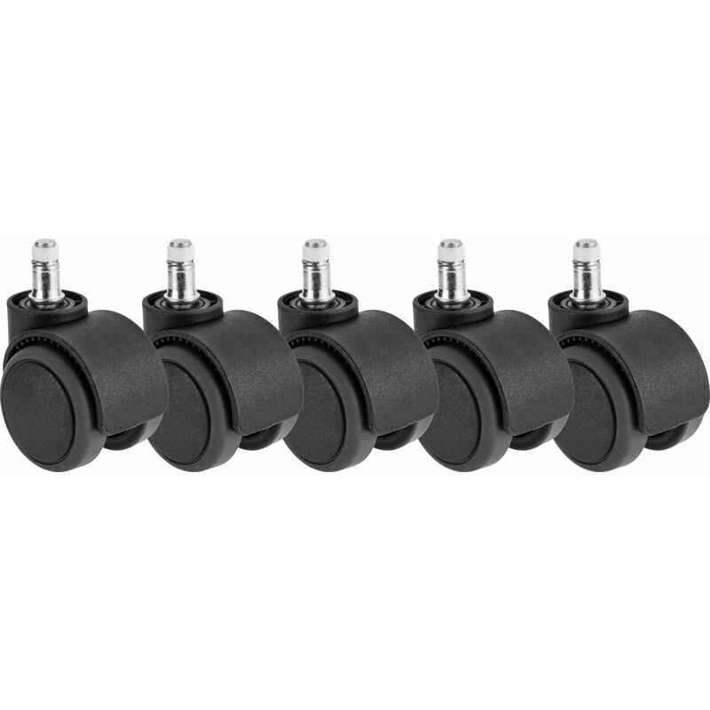 Le ruote fisse e con freno rimangono fisse quando si è seduti e sono libere di muoversi in ogni direzione quando sono in posizione di scarico. Particolarmente indicate per gli sgabelli da banco alti. Morbide ruote fisse e con freno per fondi duri. Per: Basamenti a stella per n. art. 965300 − 965427. Basamenti a stella n. art. 965250, 965260, 965270, 965280. Nota: Per sedie e sgabelli alti si raccomanda di utilizzare solo ruote fisse e con freno. Diametro del perno = 11 mm. Dati tecnici Tipo di prodotto Rotolo ⌀ Spina, mm 11
