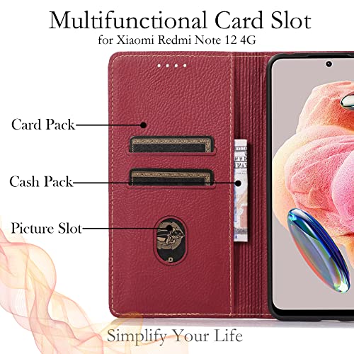 Binandteam Cover per Xiaomi Redmi Note 12 4G, Pelle Premium Magnetica Flip Wallet Case Custodia Funzione Supporto Portafoglio Cover per Xiaomi Redmi Note 12 4G - Rosso