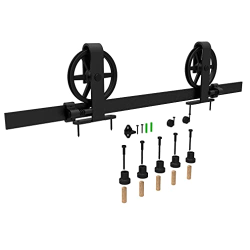 Binario per Porta Scorrevole 244cm Kit Porta Scorrevole Nera per 1 Porte Scorrevoli Interno Esterno Muro 122cm Larga, Grande Ruota T-forma