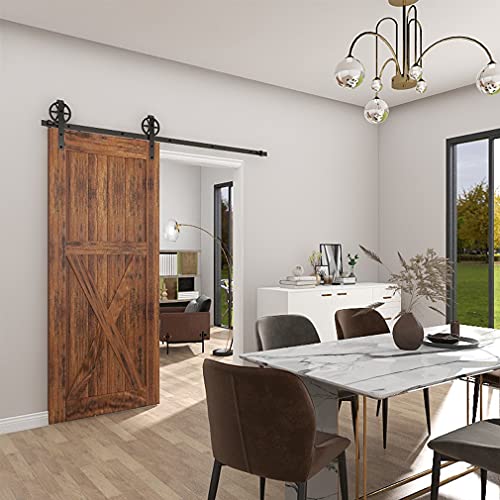 Binario Per Porta Scorrevole, CCJH 6.6ft 203cm Kit Porta Scorrevole - Barra Ruote Binario Porta Scorrevole per Una Porta Scorrevole in Legno, Grande Ruota J
