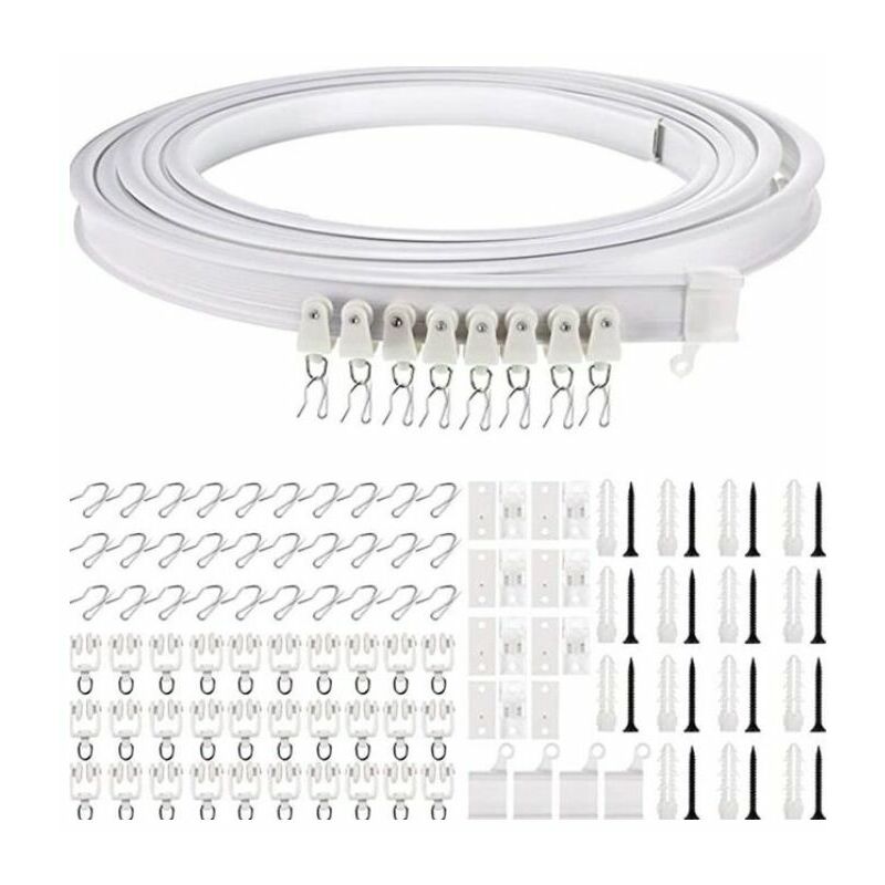 Set completo di accessori per tende: riceverai 1 pezzo di binario per tende flessibile da 5 metri, 30 pezzi di rulli per binari, 30 pezzi di ganci per tende, 15 pezzi di staffe per soffitto rimovibili, 15 pezzi di bulloneria, 4 pezzi di coperture terminali, una quantità sufficiente è adatta per l'intero processo di installazione del sistema di tende Informazioni sulle dimensioni: la lunghezza totale del binario curvo delle finestre morbide è di 5 metri, è possibile estendere il binario collegando le estremità per formare un binario continuo o montare la tenda traccia a misura con un seghetto a denti fini Durevole da usare: la staffa flessibile per tende da soffitto è combinata da 2 materiali, la parte esterna è realizzata in nano PVC sintetico e la parte interna adotta acciaio dolce, la loro combinazione rende la staffa forte, resistente e flessibile, con una capacità sufficiente per contenere tende pesanti tessuto, permettendogli di piegarsi alla maggior parte degli angoli senza