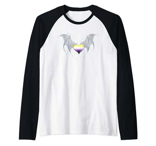 Non binary Pride Flag Cuore con Ali Gotico Non binario Goth Maglia con Maniche Raglan