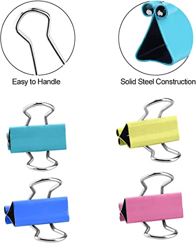 Morsetto in metallo colorato: 1,3 pollici Ogni dimensione è disponibile in quattro colori: rosa blu giallo verde. Ottenere queste grandi clip di raccoglitore di carta per ufficio Home School e artigianato come sono ideali Spremere e aprire con facilità, rilasciare e afferrare a volontà.
