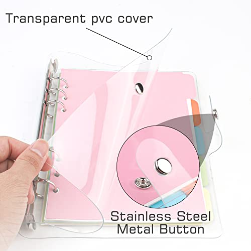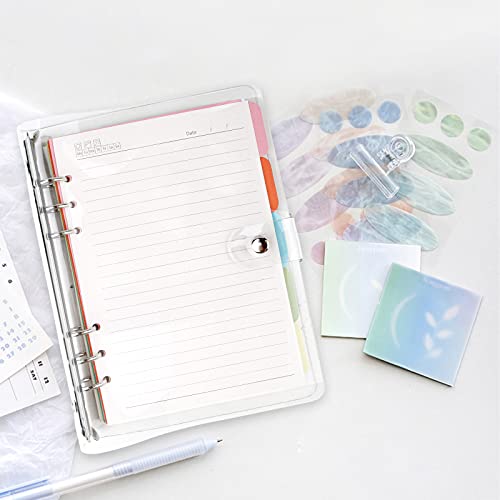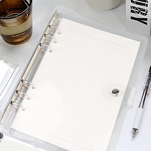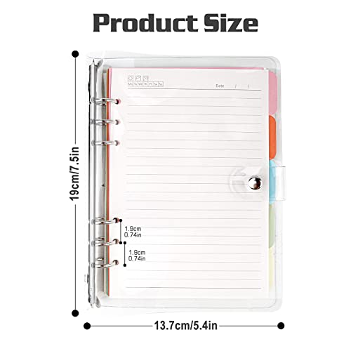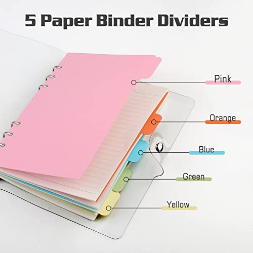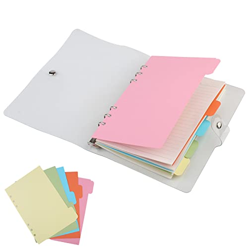 Binder - Taccuino formato A6, trasparente, con 6 scomparti rotondi, in PVC, morbido, formato A6, ricaricabile, con carta di riempimento A6, con 5 divisori, per ufficio, scuola, diario