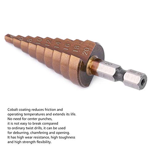 Bindpo Punta Trapano a Gradini, 4-12/4-20/4-32 Opzionale Punta da Trapano a Gradino HSS Multifunzionale M35 Fresa Fori con Codolo Esagonale(4-20)