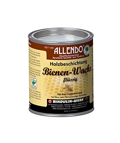 Allendo, cera d'api liquida 750 ml, barattolo di metallo con panno di Bindulin, rivestimento in legno biologico, cera d'api per rivestimenti interni, ecologica, diluibile in acqua, adatta per giocattoli per bambini, colore: naturale