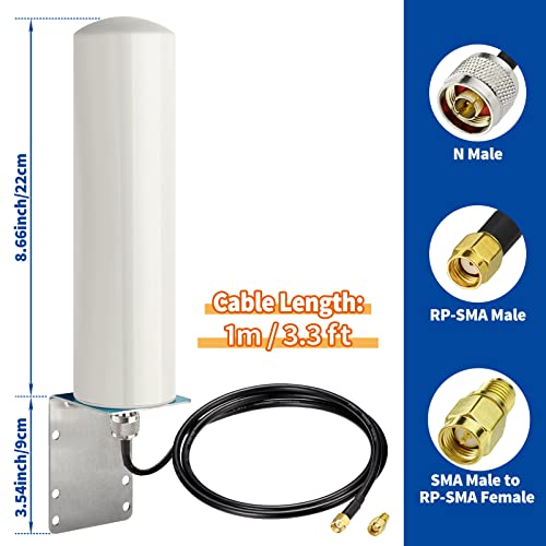 Bingfu Antenna Lora 868 mhz 3dBi Antenna LoRaWAM a Lungo Raggio Impermeabile Omnidirezionale con Cavo RG58 di 1 Metro per Miner Hotspot Helium HNT Miner RAK Nebra Bobcat SyncroBit