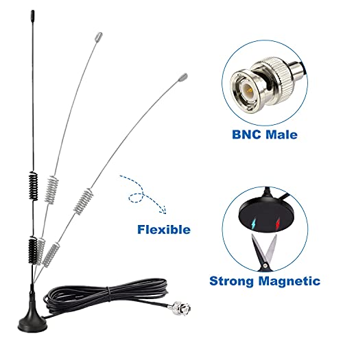 Bingfu Antenna Scanner Radio Veicolare Base Magnetica BNC Maschio 25-460Mhz 470-1200Mhz Compatibile con Uniden Bearcat Whistler Radio Shack Camion Auto Radio CB VHF UHF Walkie Talkie Scanner Polizia