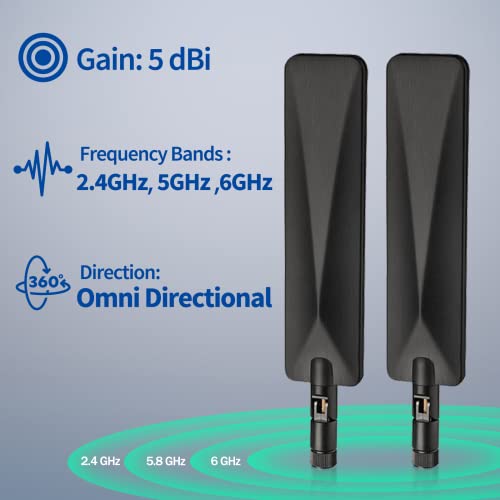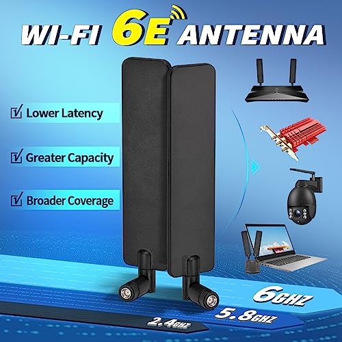 Miglioramento delle prestazioni di rete: Questo set di antenne Wi-Fi 6e supporta lo standard Wi-Fi 6e più recente, consentendo velocità wireless incredibilmente rapide e latenza ridotta. Sperimenta download e upload più veloci, meno buffering e prestazioni in tempo reale migliorate per il gioco e le videoconferenze. Aggiorna la tua esperienza wireless con questo potente set di antenne.