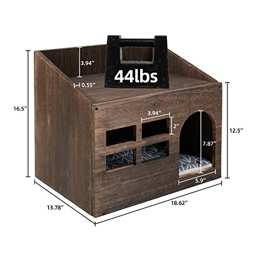 BingoPaw Casetta per gatto interno, cuccia gatto esterno casetta per gatto in legno cuccia per gatto in legno casa per gatti cuccia gatto chiusa con mobili nascosti con cuscino 47 x 35 x 42 cm