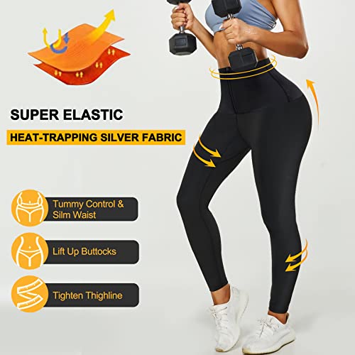 Bingrong Pantaloni Sauna Dimagranti Donna Leggins Sauna Dimagrante Vita Alta Anticellulite Snellente Leggings Sauna per Sudore Hot Thermo Shaper Pantaloni per Fitness Corsa Palestra Yoga (Nero, XL)