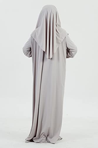 BINIAT One-Piece Musulmano Donne Abito da Preghiera Manica Lunga Hijab Thobe Abbigliamento Islamico Niqab Burka Hijab Lungo Abito Abaya,XL,Grey