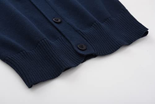 BINIDUCKLING Cardigan scolastico a maniche lunghe con scollo a V, per ragazzi e ragazze, Blu scuro, 110 cm