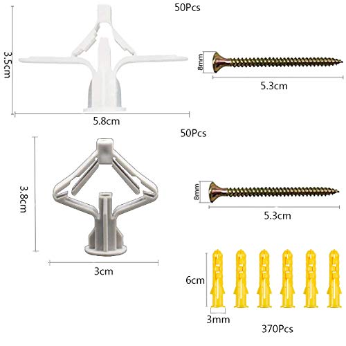 Binjor 100Pcs Tassello Spina di Espansione Tappo in plastica Nylon con Viti Aereo tubo di espansione Bullone di Ancoraggio del Tubo con 370 Tassello in nylon cartongesso
