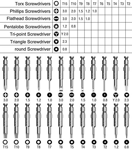 【Set Di Cacciaviti Professionale】 Pentalobe, Torx, Phillips, piccole viti, ecc,alta precisione cacciavite, un acciaio di fascia alta (in acciaio al cromo vanadio) mediante trattamento termico speciale può raggiungere HRC 52-60.
