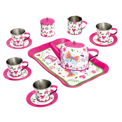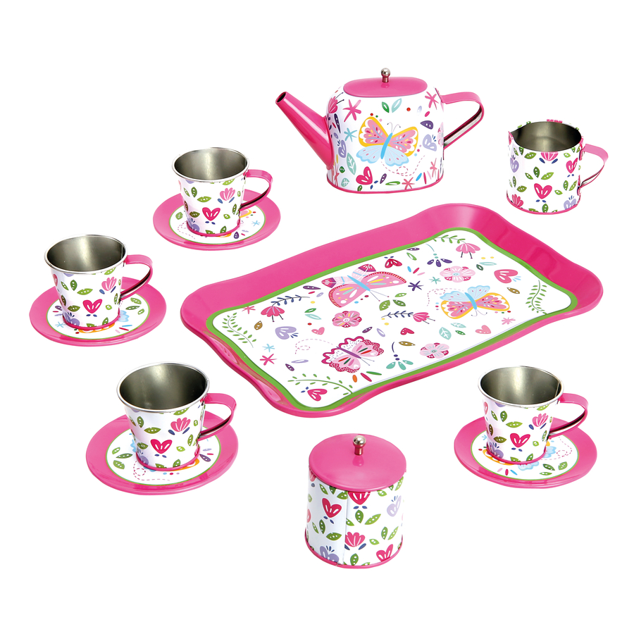 Dettagli del prodotto: Età: da 3 anni Numero di parti: 14 Decorato con simpatiche illustrazioni di fiori e farfalle Facile da trasportare e da riporre I bambini possono imparare a interagire con gli ospiti Promuove la creatività e la coordinazione occhio-mano Grande gioco interattivo genitori-bambini Realizzato in materiale di alta qualità Metal l con bordi lisci Dimensioni e peso: Misure da assemblato (lunghezza x larghezza x altezza): 33,5 x 29 x 7 cm Peso: 0,6 kg Materiale: Materiale: plastica, Metal Incluso nella consegna: 1 set da tè per bambini, rosa