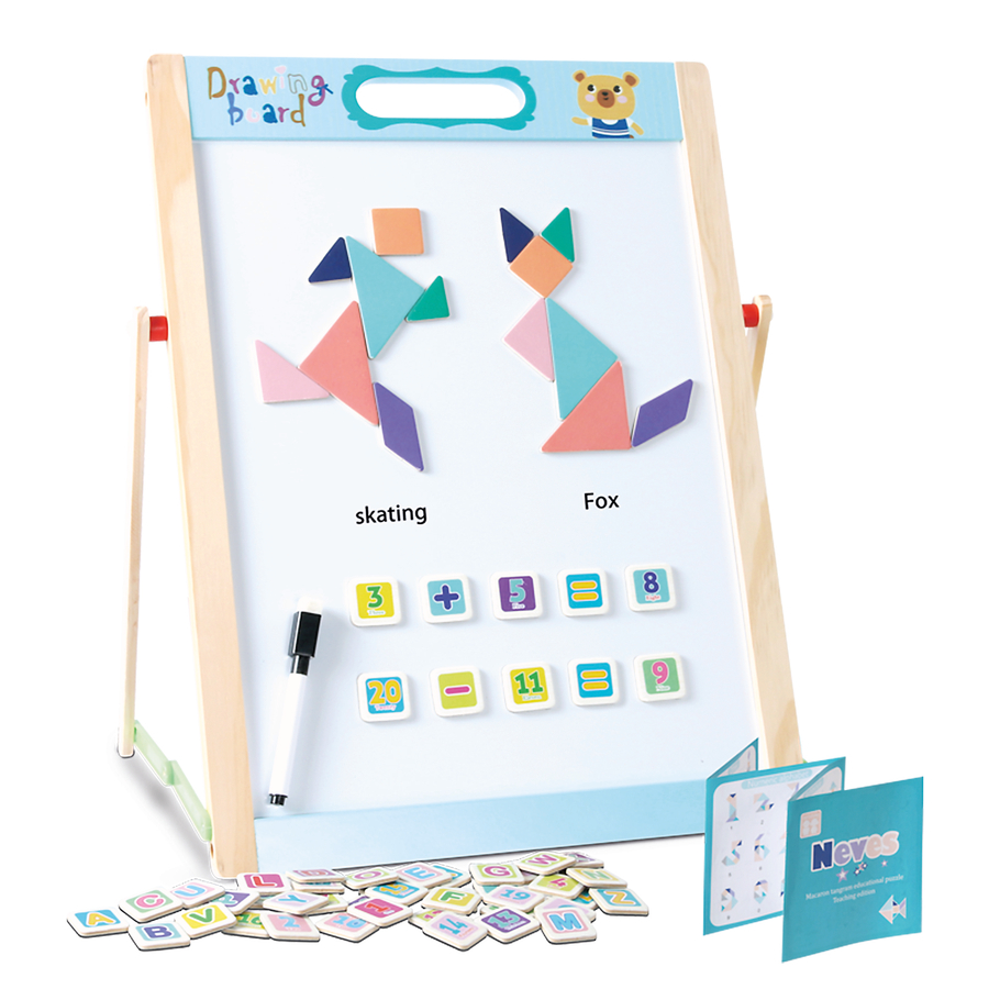 Dettagli del prodotto: Età: da 3 anni Numero di parti: 68 Un lato è bianco, magnetico e può essere scritto con pennarelli. L'altro lato è in ardesia per scrivere con il gesso. Offre tanto divertimento e svago nel disegnare, scrivere e dipingere Incoraggia la creatività Si piega in piano per essere riposto facilmente Adatto anche come giocattolo da viaggio Dimensioni e materiale: Dimensioni da assemblato (lunghezza x larghezza x altezza): 33 x 45 x 20 cm. Peso: 1,3 kg Materiale: legno Incluso nella consegna: 1 lavagna magnetica con gesso, pennarello e gomma da cancellare