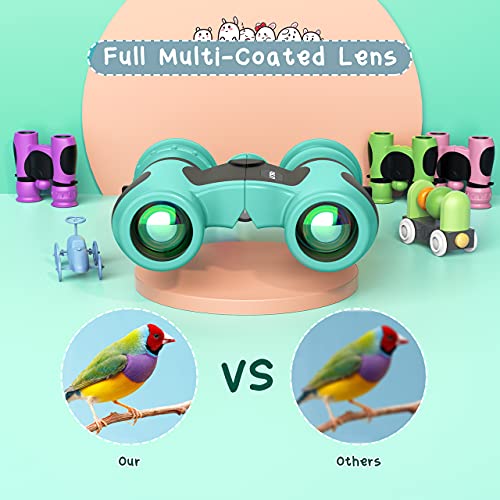 Materiale di alta Qualità - Ottiche di alta qualità con ingrandimento 8X e sistema di prismi a tetto per immagini nitide e nitide.È ideale per il birdwatching. Binocoli per bambini veri per ragazzi e ragazze.