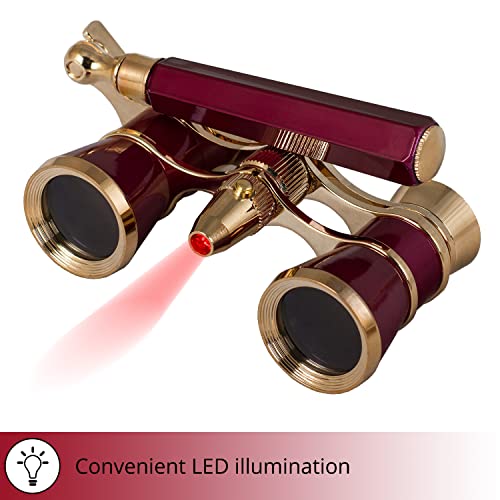Binocolo da Teatro Levenhuk Broadway 325N, Tipo Lorgnette, Color Rosso - con Luce LED e Impugnatura Allungabile