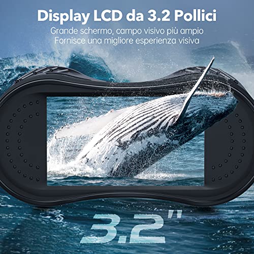 【Display HD da 3,2'' più Grande e Resistente all'acqua IP54】Lo schermo LCD TFT da 3,2" e l'obiettivo completamente multistrato da 25 mm, offrono una visione migliore e non perdono mai nessun dettaglio. Gli occhiali per la visione notturna presentano anche un livello di impermeabilità IP54, È possibile utilizzarli in caso di nebbia o pioggia leggera.