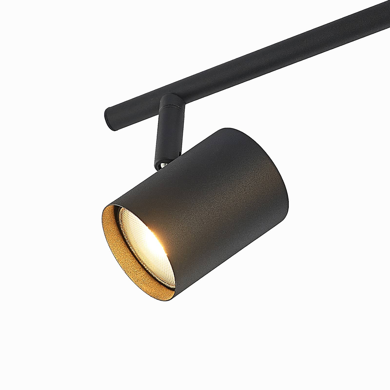 Faretto a tre lampade Binola dal design nero Binola è una fonte di luce pratica per molti scopi. È adatto per illuminare corridoi, zone giorno e altri ambienti. Le tre teste delle lampade nascondono ciascuna un attacco GU10, che può essere equipaggiato con moderni illuminatori con una potenza fino a 10 W. Inoltre, le teste delle lampade possono essere facilmente regolate, in modo da poter adattare la radiazione luminosa in modo individuale e ripetuto ai propri desideri.