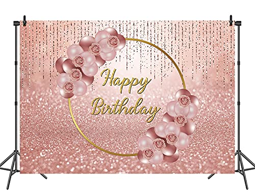 BINQOO Sfondo di compleanno 2,1 x 1,5 m Palloncino in oro rosa rosa Anello d'oro Fiori Fondali Fotografia Regina Donne Dolce principessa Ragazza 16° 18° Compleanno Festa