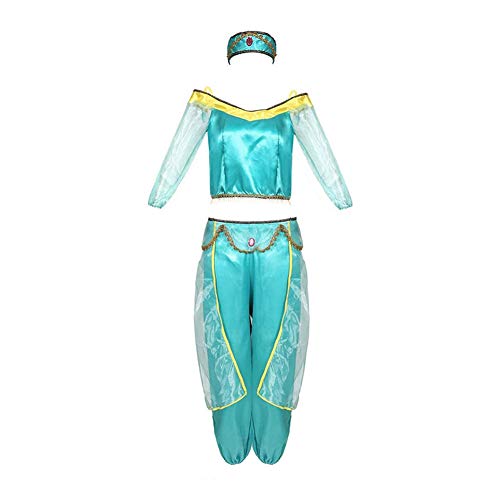 Binwwe Costume Cosplay di Aladdin Jasmine per Donne Adulte (Verde, XXL)