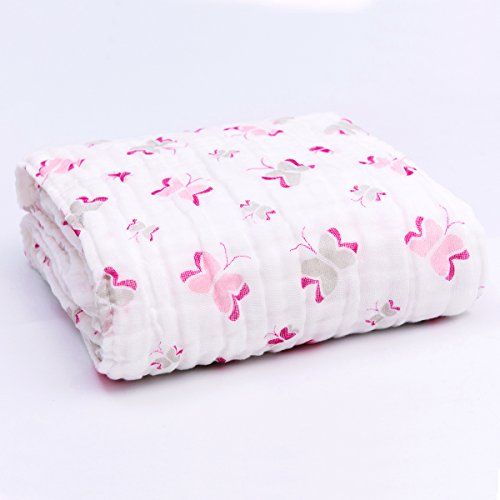 Binztec Asciugamani e Teli da Bagno di Cotone Mussolino Perfetto per la Doccia dei Bambini o Neonati 105CM*105CM-1PCS (Farfalla Rosa)