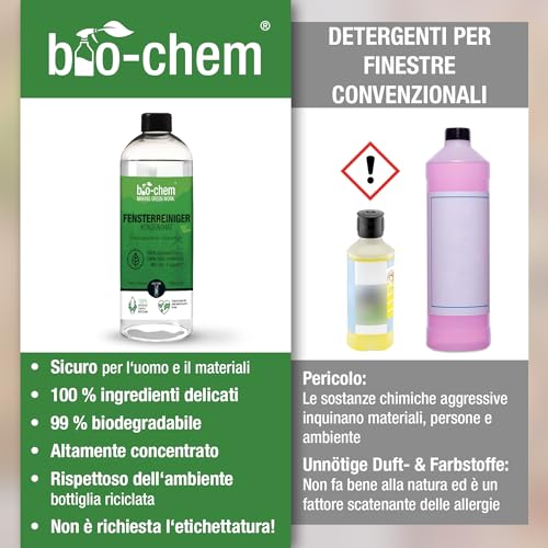 Bio-chem Detergente per vetri concentrato - 750 ml con misurino - per vetri, finestre e specchi - compatibile con aspirapolvere, lavavetri, tergivetri e spatole per vetri