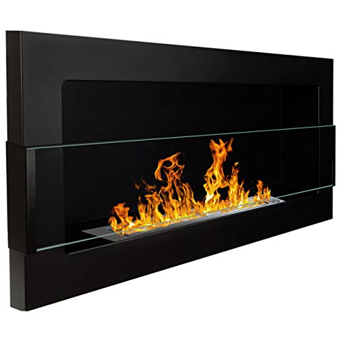 Biocamino da 900 x 400 o 650 x 400, caminetto a bioetanolo in gel, da parete, nero, satinato