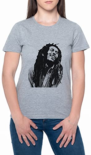 BIOCLOD Bob Marley Felice Donne Maglietta Grigio Girocollo Women T-Shirt Grey Round Neck S