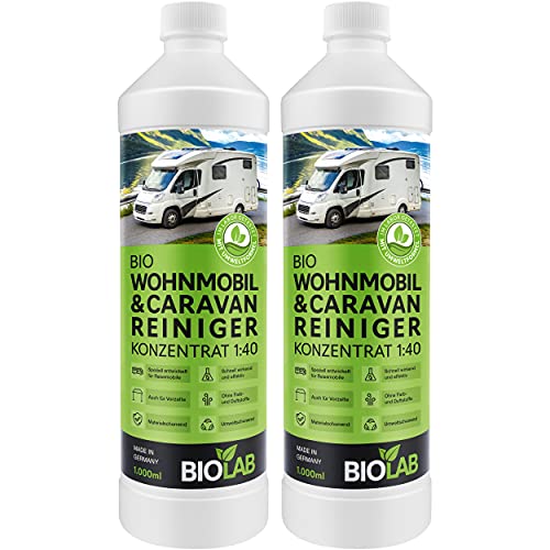 BIOLAB Detergente biologico per camper e caravan, concentrato 1:40 (2 X 1000 ml) per la pulizia esterna di roulotte, veranda, ecc. - rimozione delle strisce di pioggia