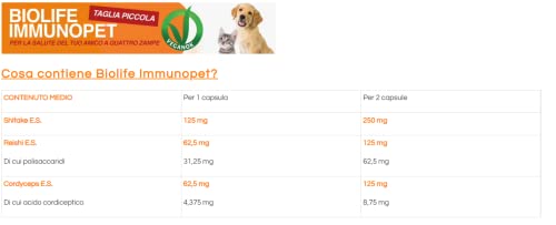 Biolife Immunopet è utilizzato per cani e gatti di TAGLIA PICCOLA| Hai un animale di taglia grande? Cerca su Amazon la scheda di Biolife Immunopet Strong