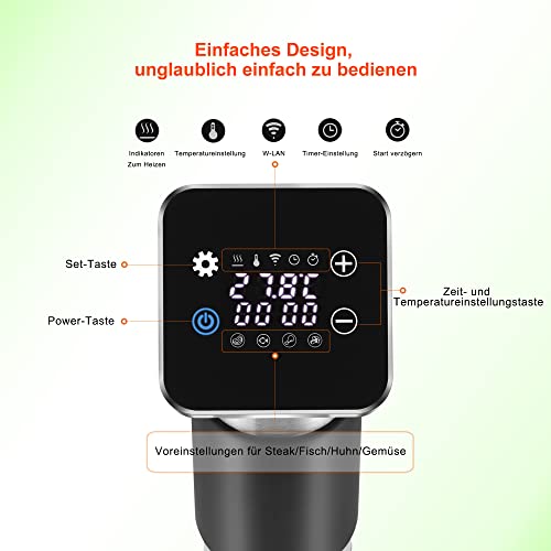 Biolomix Sous Vide, fornello di precisione WiFi, fornello di precisione, termostato sommergibile, macchina Sous-VIS con controllo temperatura, tempo e touch, 1300 W