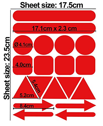 ✔ DIVERSI FORMATI E FORME: Qualità professionale - Numero di etichette: 19 / Il set di adesivi da 19 pezzi con adesivi riflettenti contiene: frecce 4x 84x25mm / triangoli 5x 54x52mm / quadrati 4x 40x40mm / 4 cerchi Ø40mm / striscia 2x 170x23mm