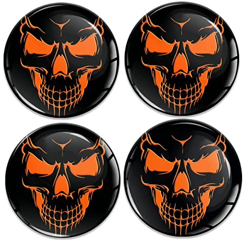 Biomar Labs 4 x 50 mm adesivi 3D silicone teschio arancione per coprimozzo coprimozzo coprimozzo ruota adesivo coprimozzo A7450