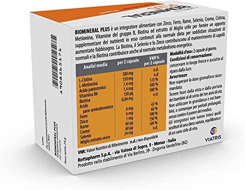 Biomineral Plus 120 Capsule Integratore Alimentare Con Cistina Metionina Ed Estratto Di Miglio (2 Confezioni da 60 Capsule)