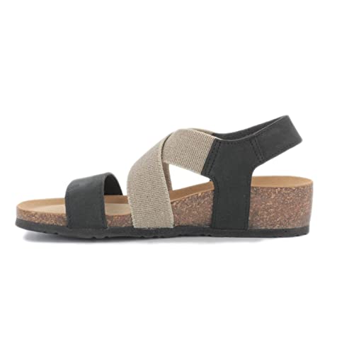 Bionatura 12A998 Sandalo da donna in nabuk con elastico e zeppetta Nero (numeric_39)