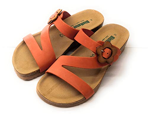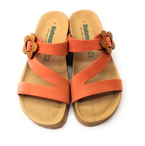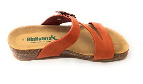 BioNatura 12 A 2038 Ciabatta Fasce Donna Fibbia Fiore Zeppa 40 Plantare Imbottito -Made in Italy- (Nabuk Mandarino, Numeric_37)