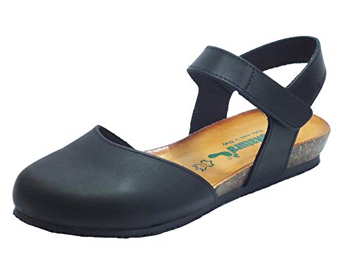 BioNatura 68 C 2081 I Tus Pelle Gaucho Nero Sandali Chiusi Donna Zeppa Bassa Chiusura a Strappo (Taglia 41)