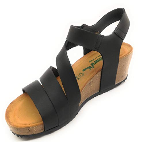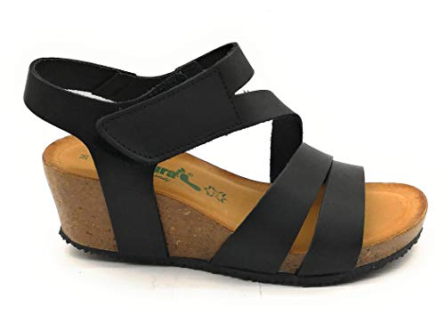 BioNatura 37 a 2092 Sandalo Comodo Donna Zeppa 5 cm Fasce Velcro Pelle Nero (Numeric_37)