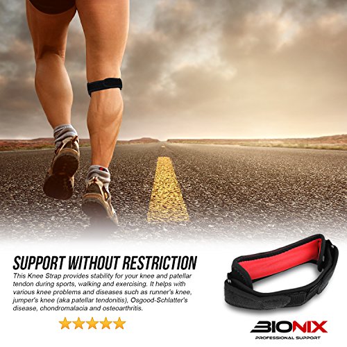 Bionix, fascia per tendine rotuleo, eccellente supporto per tendine rotuleo, aiuta con saltatori, corridori, Osgood Schlatter, monitoraggio rotuleo, tendinite, dolori articolari, Nero, 1 confezione