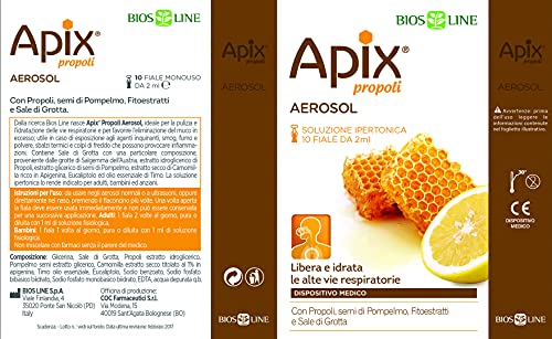 PROPOLI: Apix Propoli Aerosol nasce dalla ricerca Bios Line. Apix è ideale per la pulizia e l'idratazione delle vie respiratorie e per favorire l'eliminazione del muco in eccesso;