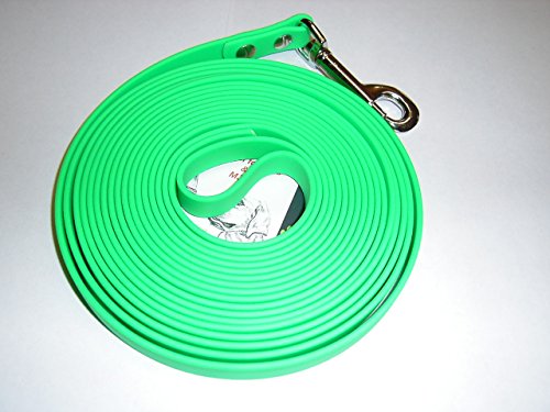 MJH BioThane - Guinzaglio lungo 1,50 m, larghezza 16 mm, verde fluo, con cinturino da polso