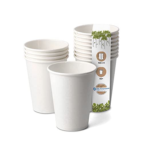 BIOZOYG Bicchiere di carta biologico I Bicchiere monouso Bicchiere di carta Bicchiere compostabile e biodegradabile I Bicchieri bianchi, non stampati, eco-compatibili 50 pezzi 300ml 12 oc