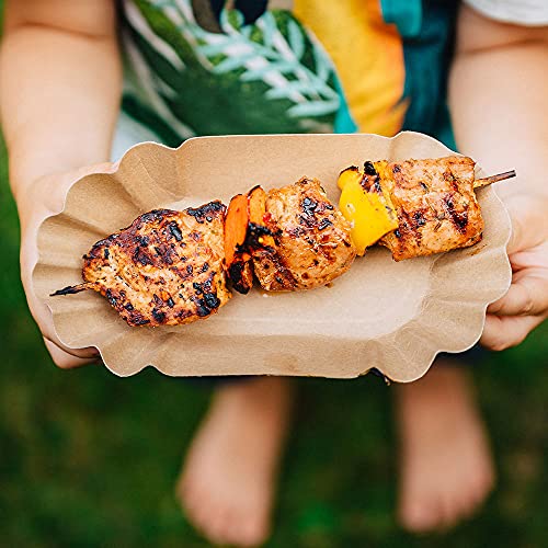 BIOZOYG Ciotole di carta ovali 19,5x11x3,2 cm I Piatti da merenda marroni in cartone riciclato per patatine salsiccia ecc. I riciclabili - ecologici I vassoi per patatine fritte 250 pezzi