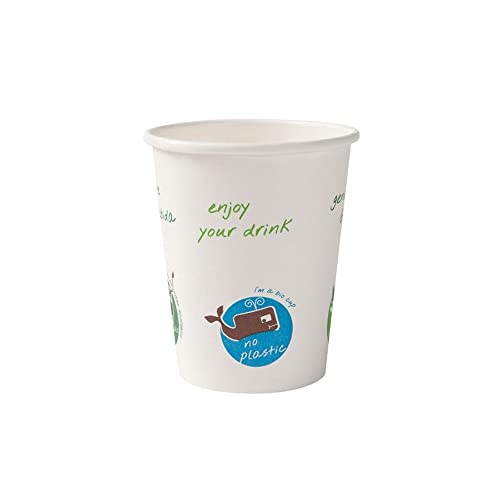 Riceverai 50 tazze monouso bianche, 200 ml, 8 once, con una stampa a fumetti amichevole, che sottolinea i benefici duraturi della tazza
